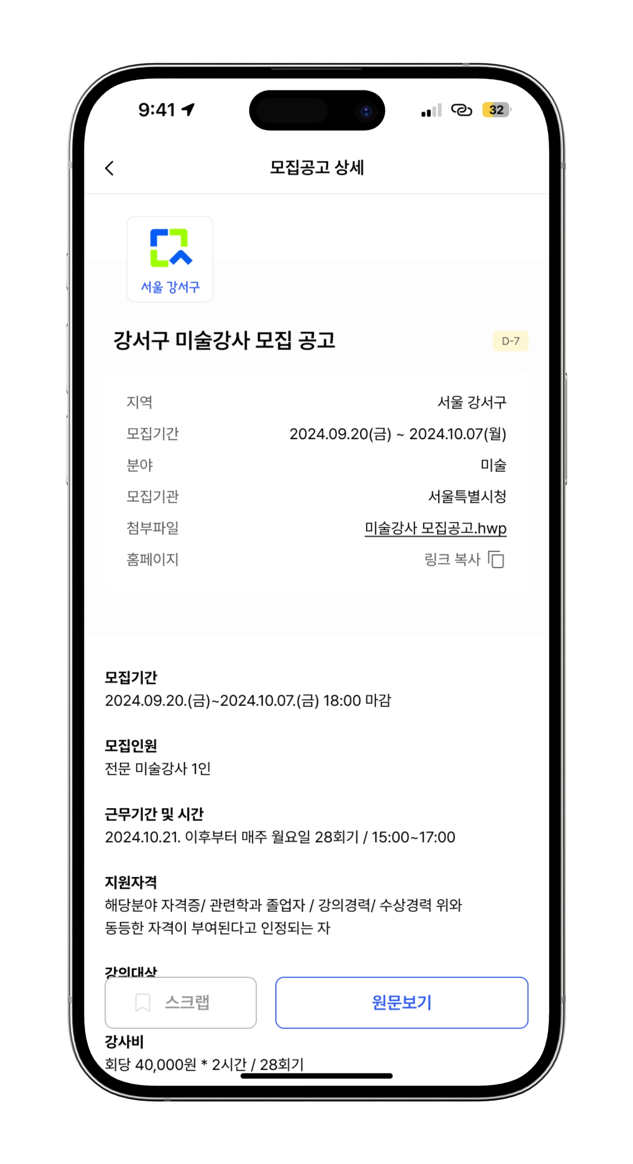 요약된 내용도 보고 상세 내용도 꼼꼼하게 살펴보고 싶은 강사님들께 필요한 기능이에요. 첨부파일을 클릭해 서류 정보를 확인하고 내가 지원할 수 있는 공고인지 확인해보실 수 있어요.